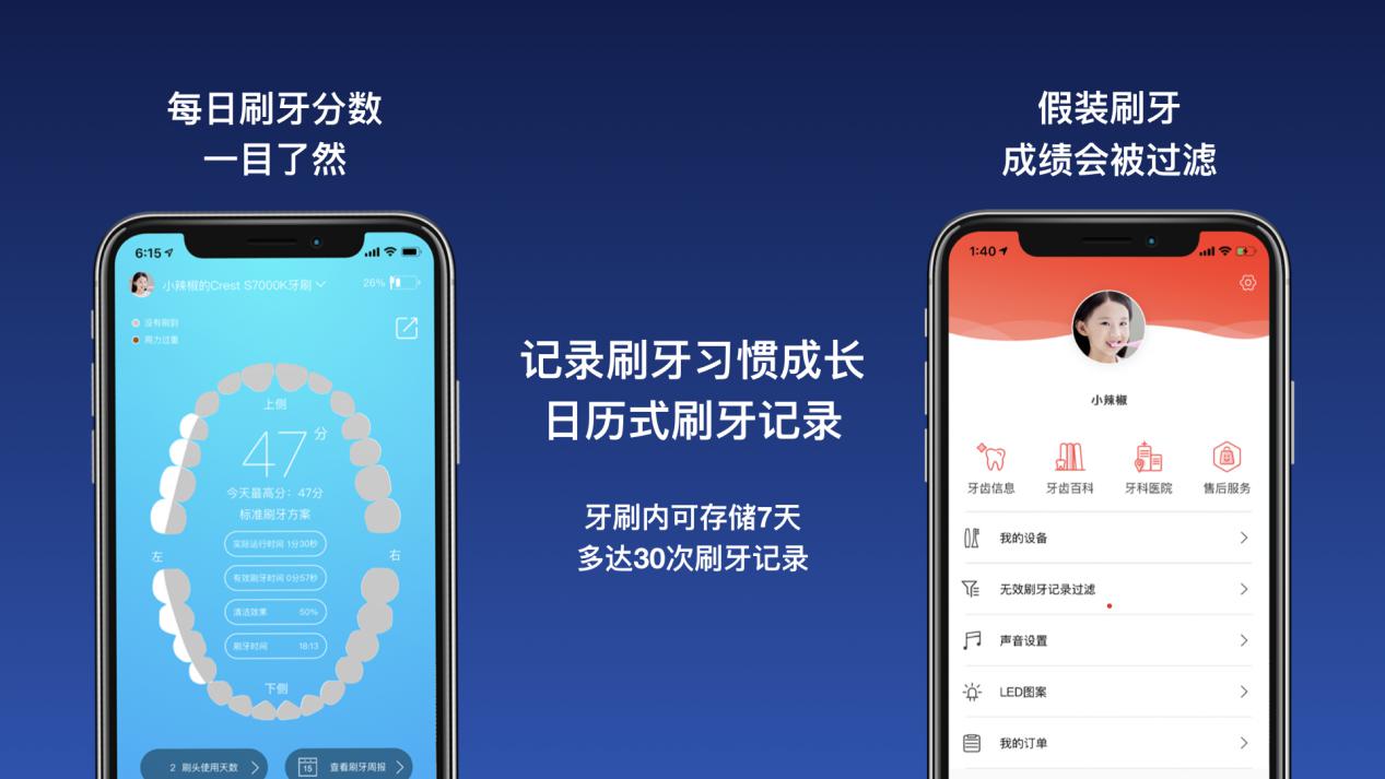 牙刷內(nèi)置的智能芯片可以計算有效刷牙效果;通過內(nèi)置九軸陀螺儀,每分鐘可檢測1500次刷牙姿態(tài);而內(nèi)置的壓力檢測能夠知道孩子的刷牙力度;軟硬件結(jié)合實現(xiàn)智能打分,讓孩子和家長直觀看到刷牙效果。