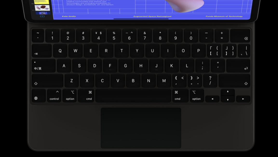 在iPadOS13中,蘋果加入了針對(duì)鼠標(biāo)的支持,另外蘋果還專門為這款新iPad Pro設(shè)計(jì)專屬的Magic Keyboard鍵盤,不僅有全尺寸鍵盤,采用獨(dú)立的硬質(zhì)鍵帽及一毫米鍵程剪刀式結(jié)構(gòu),帶來靈敏、舒適又安靜的輸入體驗(yàn)。還設(shè)有點(diǎn)按效果全面一致的觸控板,搭配iPad OS也能得心應(yīng)手處理辦公內(nèi)容。