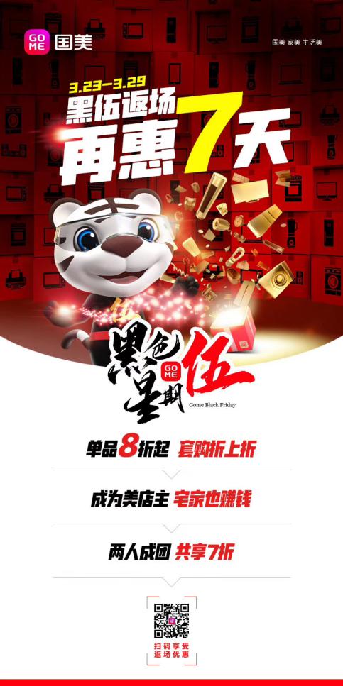 據(jù)了解,3月23日-3月29日,國(guó)美零售“黑伍”返場(chǎng),再惠7天。在此期間,國(guó)美多種優(yōu)惠玩法悉數(shù)上線。用戶將不僅享受單品8折起、套購(gòu)折上折的優(yōu)惠,成為美店主,還能宅家賺錢,享受商品返利。此外,還有兩人成團(tuán),共享7折等,快來(lái)國(guó)美美店廚飲專場(chǎng)選購(gòu)吧。