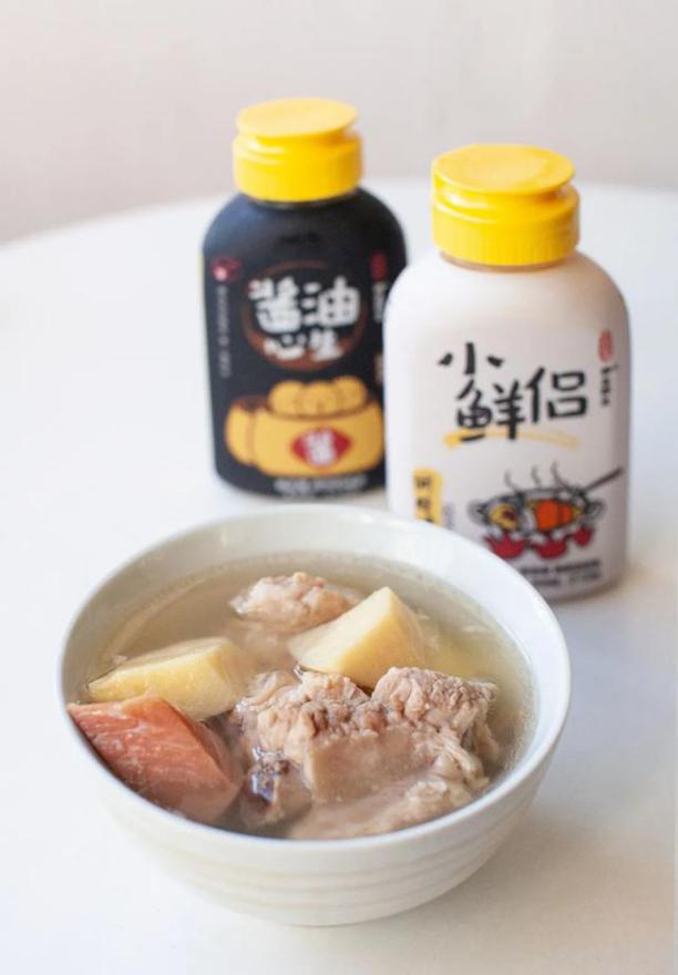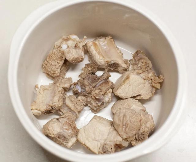 2.把排骨、火腿、干貝、春筍、姜、蔥放入鍋中,加入小鮮侶,加入涼水,放入隔水燉鍋中,燉2.4小時(shí),即可出鍋。