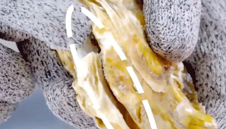 開(kāi)生蠔特簡(jiǎn)單,趁其不備,找到生蠔邊緣,插它一刀,往邊上一擰,它就不“自閉”了!