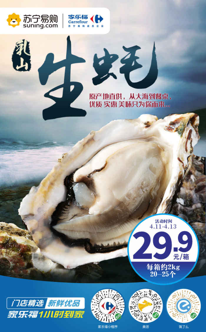 4月11日至13日,家樂(lè)福限時(shí)秒殺價(jià)!買(mǎi)它!省了跑去乳山的車(chē)費(fèi),在家就能吃到新鮮乳山生蠔。