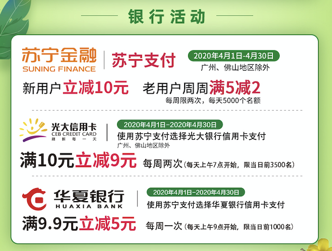為響應(yīng)政府號(hào)召和消費(fèi)者日益見長的購物需求,其中深圳蘇寧發(fā)放千萬補(bǔ)貼券,即日起至5月5日,發(fā)放5000萬消費(fèi)券,每人最高可領(lǐng)850元,部分家電可疊加24期免息,同時(shí)蘇寧推出家電以舊換新服務(wù),最高可領(lǐng)補(bǔ)貼1500元,提供舊機(jī)評估回收,購新機(jī)補(bǔ)貼以及優(yōu)惠券等多種形式,為滿足消費(fèi)者對智能、節(jié)能及健康家電需求,深圳蘇寧設(shè)定1000萬節(jié)能補(bǔ)貼專項(xiàng)券,最高可領(lǐng)400元優(yōu)惠券,用于一級能效、人工智能、5G等產(chǎn)品,此番一方面活躍線下門店消費(fèi),另一方面也帶動(dòng)商圈附近餐飲和娛樂業(yè)的消費(fèi)增長。