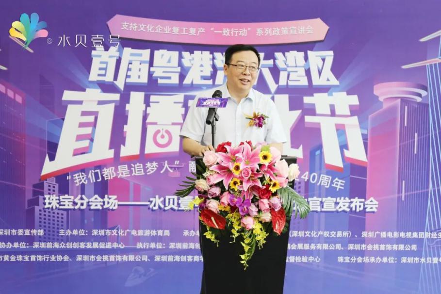 見(jiàn)圳客戶端·深圳新聞網(wǎng)2020年7月21日訊 昨日,支持文化企業(yè)復(fù)工復(fù)產(chǎn)“一致行動(dòng)”系列政策宣講會(huì)暨粵港澳大灣區(qū)直播文化節(jié)珠寶分會(huì)場(chǎng)“水貝壹號(hào)品牌珠寶集聚地”官宣發(fā)布會(huì)在水貝壹號(hào)舉行,標(biāo)志著首屆粵港澳大灣區(qū)直播文化節(jié)珠寶分會(huì)場(chǎng)“水貝壹號(hào)品牌珠寶集聚地”活動(dòng)正式啟動(dòng)。