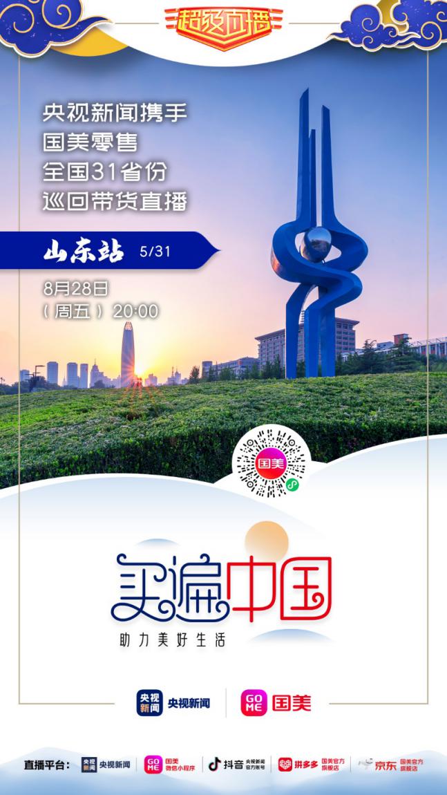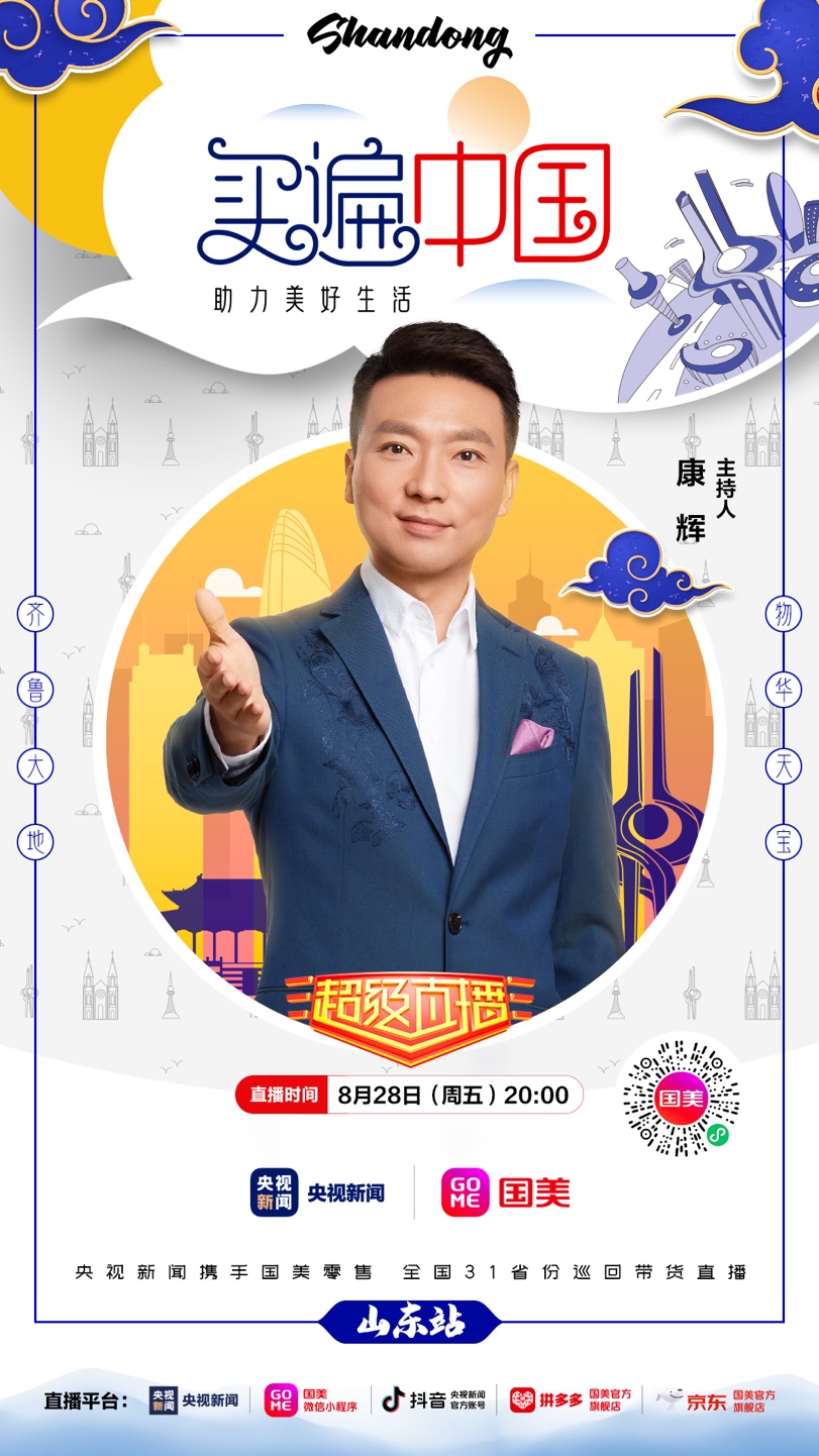 8月28日晚20點(diǎn),記得鎖定國美微信小程序、拼多多國美官方旗艦店、京東國美官方旗艦店,及央視新聞的客戶端、抖音號(hào),“買遍中國”山東站直播間,一起來看“央視大 boy”康輝帶貨狂奔?。ǔ\娖剑?/p>