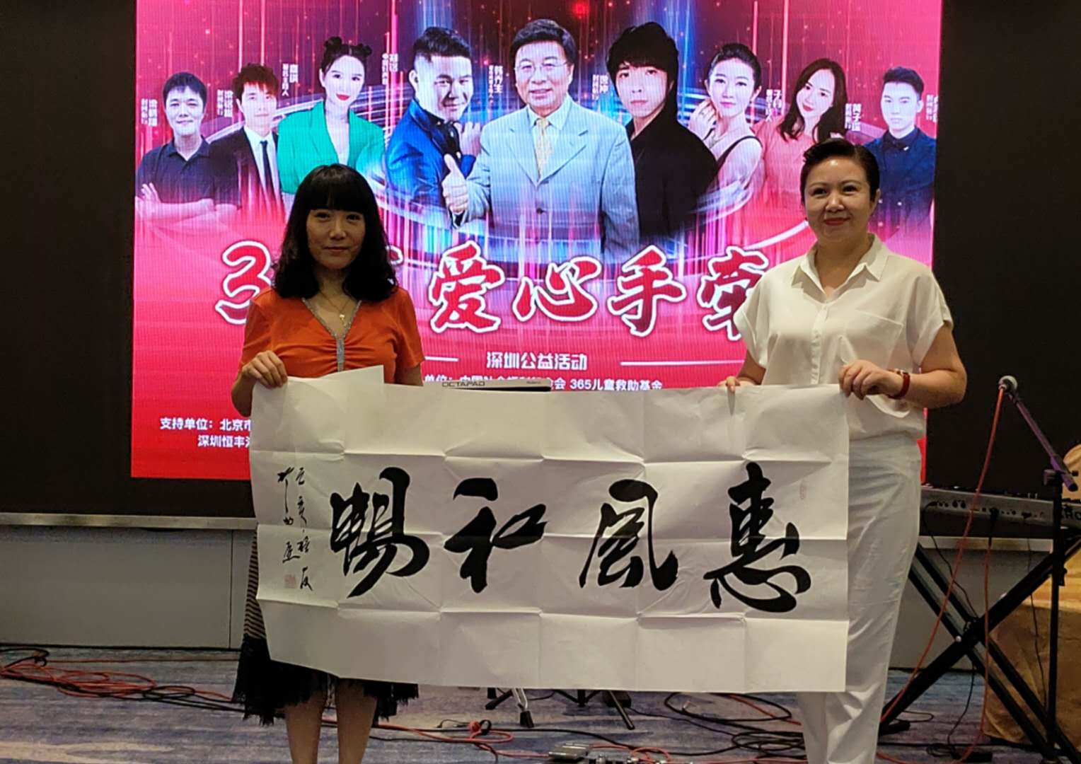 中國社會福利基金會365兒童救助基金執(zhí)行主任、北京市童康腦癱兒童康復(fù)中心理事長、365晨光寶貝之家創(chuàng)辦人趙麗萍、秘書長肖啟良、深圳市寶安區(qū)政協(xié)副主席項健、寶安區(qū)慈善會會長張洪華、寶安區(qū)民政局局長黃平彪、寶安區(qū)工商業(yè)聯(lián)合會(總商會)書記古菁華、深圳市慈善會創(chuàng)始副會長監(jiān)事范建華、寶安區(qū)社會救助綜合服務(wù)中心主任陶雋、央視著名主持人韓喬生、嘉琪、深圳著名主持人子丹、時間旅行樂隊逸沖、歌手鄭銘等畫家、企業(yè)家、愛心人士、志愿者等100多名人士參加了此次活動。