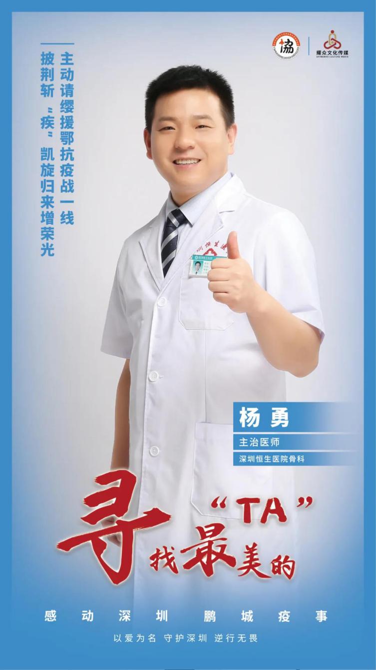 深圳恒生醫(yī)院作為社會(huì)辦三級(jí)綜合醫(yī)院,不僅被列入深圳49家設(shè)立發(fā)熱門(mén)診的醫(yī)院,同時(shí)也是首家派遣醫(yī)護(hù)隊(duì)援鄂的社會(huì)辦醫(yī)院。而楊勇,即首批堅(jiān)決主動(dòng)請(qǐng)戰(zhàn)、帶隊(duì)赴荊斬疾的優(yōu)秀黨員醫(yī)生代表。