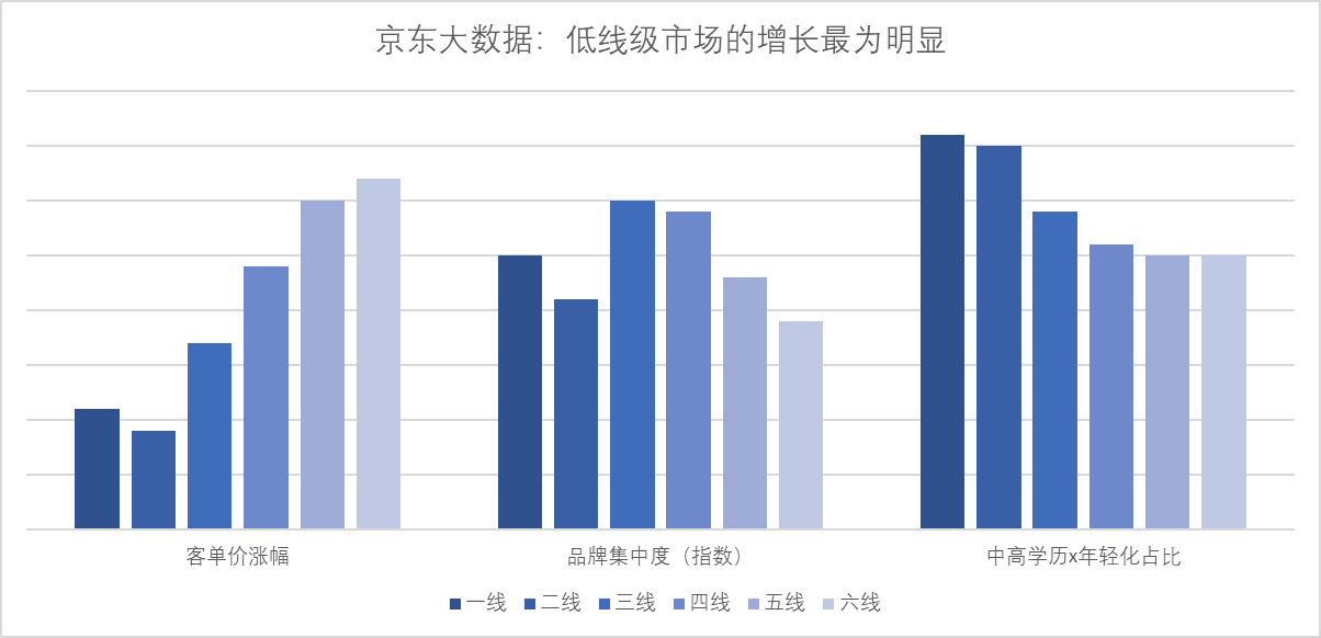 京東大數(shù)據(jù)從“客單價漲幅、品牌集中度、高學(xué)歷及年輕人占比”等指標對1 -6線消費者的月餅購買數(shù)據(jù)進行分析發(fā)現(xiàn),京東月餅消費者大學(xué)及以上學(xué)歷占比70%;90后用戶占比65%;中高消費水平用戶占比98%;此外需要注意到中低線市場“小鎮(zhèn)”中等收入人群的崛起,這些年輕化、高學(xué)歷、懂品味的人群正在引導(dǎo)整體消費市場從追求性價比到品牌、品味等更高追求的轉(zhuǎn)變。
