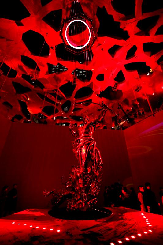大型沉浸式藝術(shù)裝置“赤子心”橫跨了平安金融中心商場九至十層平臺,總占地面積近四千平方米。在展出十五件大型雕塑作品的同時,將光影藝術(shù)與聲音藝術(shù)巧妙融合,串聯(lián)起虛擬影像與現(xiàn)實(shí)空間,以闡釋純粹、無畏的赤子之心。“赤子心”使觀眾走入藝術(shù)品內(nèi)部、探索藝術(shù)家的內(nèi)心深處,通過親身參與展覽并與之對話,從而理解“其大無外,其小無內(nèi),世界即內(nèi)心投射”的本質(zhì)。