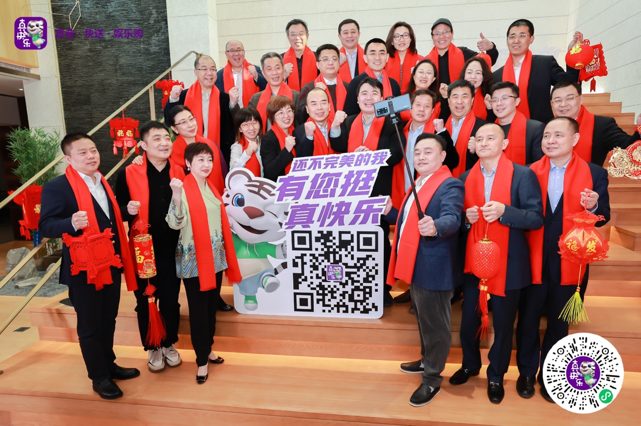 他還表示,“今天元宵節(jié),我特別邀請全國消費者,掃碼‘真快樂’A PP,來‘真快樂’體驗!”合影時,黃光裕帶頭玩起了自拍,他牽著“真快樂小虎”,特別提議在這個快樂的節(jié)日,大家一起為“真快樂”A PP打C ALL。他帶領(lǐng)高管們向全體國美員工、各界合作伙伴、全國消費者,一起發(fā)出“還不完美的我,有您挺!真快樂!”的熱情邀請和真摯祝福,將元宵國美全家??鞓范ǜ?。