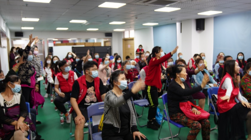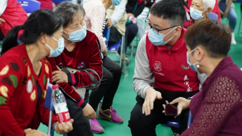 (志愿者一對一解答老人問題)