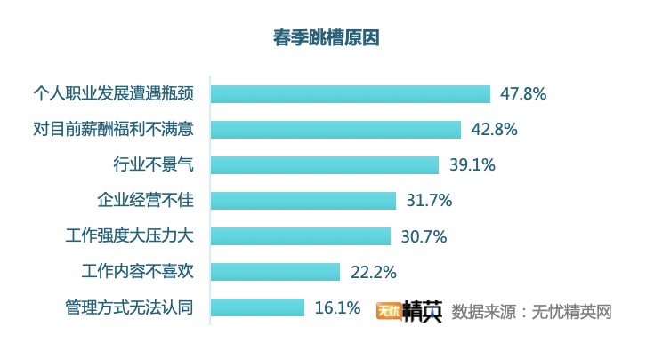 在此次調(diào)研中個(gè)人職業(yè)發(fā)展遭遇瓶頸、對(duì)薪酬福利不滿意依然如往年一般領(lǐng)跑,行業(yè)不景氣、企業(yè)發(fā)展不佳兩個(gè)選項(xiàng)緊隨其后。究其原因,還是在于部分行業(yè)與企業(yè)在經(jīng)歷疫情后實(shí)力受損恢復(fù)緩慢,員工失去了共同發(fā)展的信心,這也造成在此次跳槽調(diào)研中,職場(chǎng)精英更加青睞實(shí)力強(qiáng)勁的企業(yè)作為自己新的發(fā)展平臺(tái)。