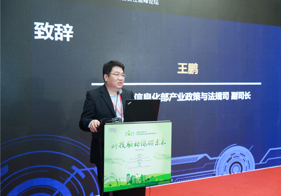 工業(yè)和信息化部產(chǎn)業(yè)政策與法規(guī)司副司長(zhǎng)王鵬在致辭中表示,在中國(guó)“碳達(dá)峰、碳中和”目標(biāo)引領(lǐng)和低碳化發(fā)展的新形勢(shì)下,加強(qiáng)工信領(lǐng)域企業(yè)社會(huì)責(zé)任建設(shè)正當(dāng)其時(shí),十分必要。希望行業(yè)專家和實(shí)力企業(yè)圍繞企業(yè)在新形勢(shì)下如何緊抓綠色發(fā)展機(jī)遇,探討電子信息行業(yè)企業(yè)利用科技創(chuàng)新力量,助力“碳中和”目標(biāo)實(shí)現(xiàn)的方法路徑等熱點(diǎn)問(wèn)題,搭建學(xué)習(xí)交流、經(jīng)驗(yàn)分享的溝通平臺(tái),積極為中國(guó)低碳循環(huán)經(jīng)濟(jì)建設(shè)與發(fā)展建言獻(xiàn)策。希望越來(lái)越多的電子信息行業(yè)企業(yè)加入到行業(yè)社會(huì)責(zé)任和國(guó)家低碳可持續(xù)發(fā)展未來(lái)的建設(shè)之中,共同推動(dòng)中國(guó)電子信息行業(yè)可持續(xù)發(fā)展和企業(yè)社會(huì)責(zé)任建設(shè)邁上新臺(tái)階。