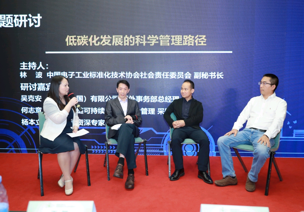 在“低碳化發(fā)展的科學(xué)管理路徑”研討環(huán)節(jié),中電標(biāo)協(xié)社會(huì)責(zé)任工作委員會(huì)副秘書長(zhǎng)林波與索尼(中國(guó))對(duì)外事務(wù)部總經(jīng)理吳克安、戴爾供應(yīng)鏈可持續(xù)發(fā)展及風(fēng)險(xiǎn)管理采購(gòu)總監(jiān)何志章、社會(huì)責(zé)任資深專家楊本立共同探討企業(yè)如何更好地進(jìn)行綠色低碳管理,為電子信息行業(yè)低碳發(fā)展帶來(lái)新的思考與借鑒。(張俊達(dá))