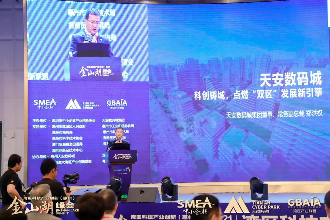 “‘雙區(qū)’建設是國家領導人和黨中央部署的重大國家戰(zhàn)略,作為粵港澳大灣區(qū)重要節(jié)點和深圳都市圈重要成員,全力支持、積極融入既是惠州鮮明的政治態(tài)度,也是惠州發(fā)展的必然抉擇。相信在惠州市及各級政府部門支持下,深圳市中小企業(yè)產(chǎn)業(yè)創(chuàng)新協(xié)會、天安數(shù)碼城集團強強攜手,與各方合作伙伴共同努力,通過每年一屆的“灣區(qū)產(chǎn)業(yè)創(chuàng)新(惠州)金山湖峰會”深入落實創(chuàng)新驅(qū)動發(fā)展戰(zhàn)略,匯聚粵港澳大灣區(qū)產(chǎn)業(yè)創(chuàng)新資源,深化粵港澳創(chuàng)新合作,助力惠州與灣區(qū)城市間的產(chǎn)業(yè)創(chuàng)新與協(xié)同發(fā)展。