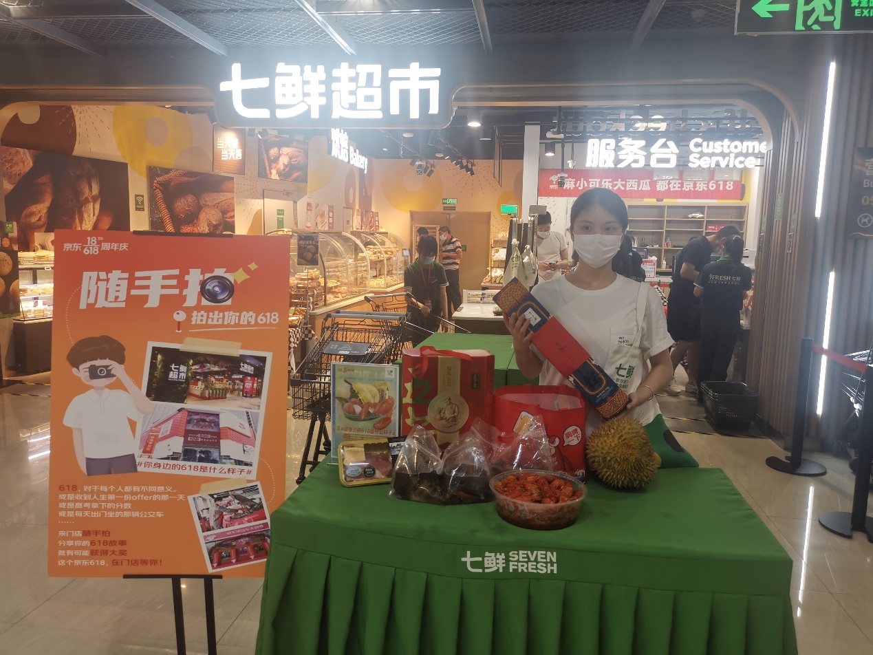 在七鮮超市不僅能盡情吃喝,還能參與到京東618的線下“隨手拍”活動。一直到6月18日,前往任意一家京東線下門店,拍攝帶有京東618創(chuàng)意元素的照片,參與與京東微博話題互動,就有機(jī)會獲得華為Mate 40 Pro、五菱宏光MINI EV等豪華大獎。