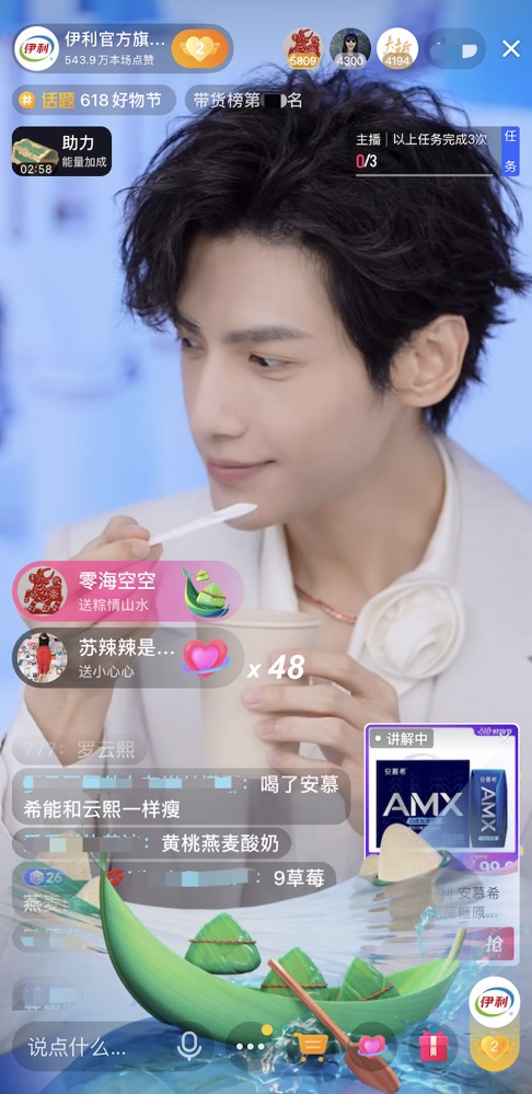 在新?tīng)I(yíng)銷(xiāo)上,伊利旗下安慕希品牌憑借強(qiáng)大的品牌力,在618期間聯(lián)合平臺(tái)打造首個(gè)乳品品牌狂歡日。邀請(qǐng)品牌形象大使羅云熙空降伊利抖音直播間,與消費(fèi)者進(jìn)行互動(dòng)直播,內(nèi)容寵粉的同時(shí)高效轉(zhuǎn)化銷(xiāo)售。憑借寵粉互動(dòng)吸引抖音平臺(tái)年輕消費(fèi)者群體,狂歡日當(dāng)日直播間消費(fèi)者中,年輕人群比例高達(dá)70%。