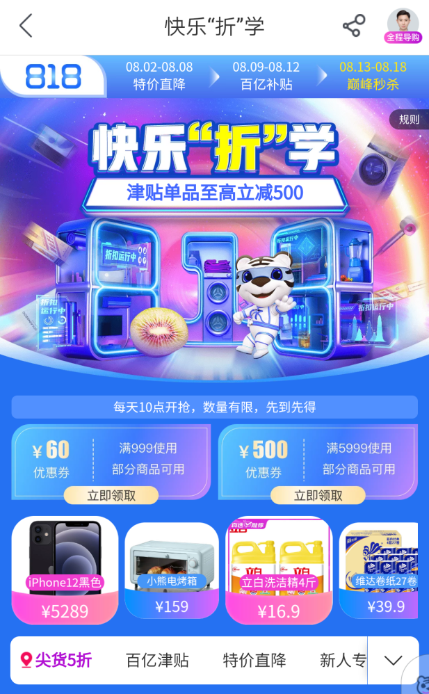 以818大促為例,8月12日至18日期間,“真快樂”以“特價直降”“百億津貼”和“巔峰秒殺”三重活動讓利消費(fèi)者,一重更比一重優(yōu)惠?;顒痈@采w食品酒水、服飾鞋包、家居家裝、日用百貨、母嬰玩具、美妝個護(hù)、家用電器等全品類品質(zhì)好物。與此同時,消費(fèi)者不僅可以享受“真快樂”提供的折扣優(yōu)惠,還可以通過國美“折上折A PP”領(lǐng)券,再次享受優(yōu)惠,實現(xiàn)折上再折,折上再減。無需費(fèi)心拼單、湊單,一鍵領(lǐng)取優(yōu)惠券,折扣即可到手。