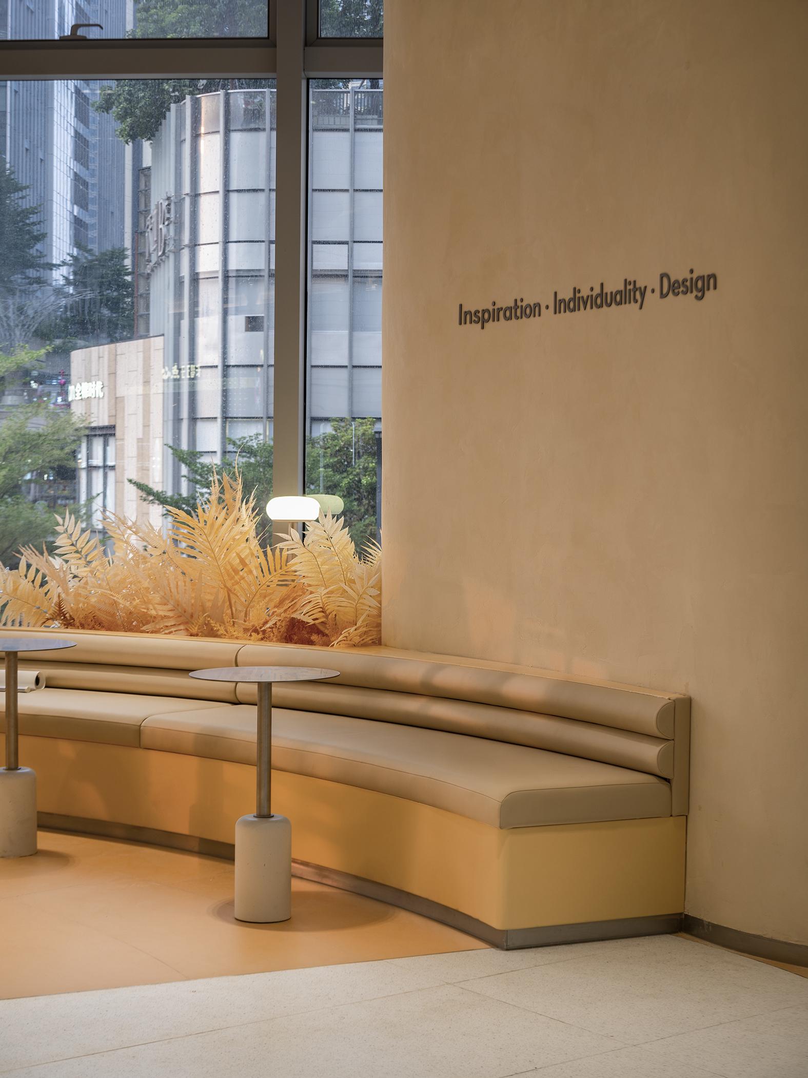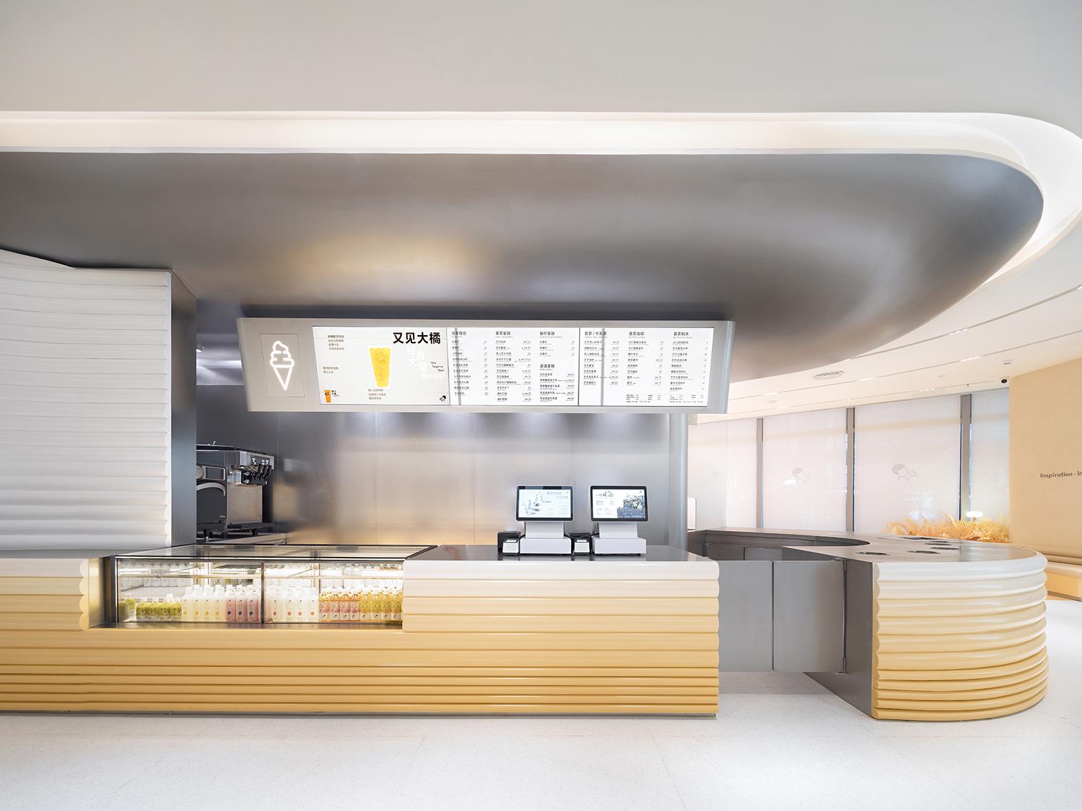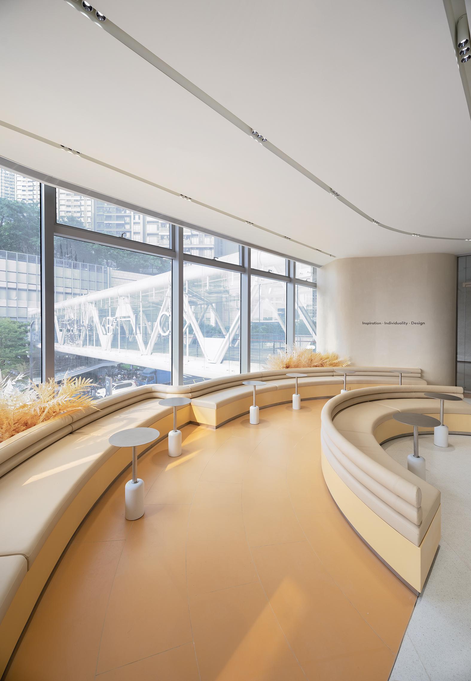 走進喜茶深圳壹方天地C區(qū)店,通透的全落地玻璃外立面,讓藍天白云似乎觸手可及;渾然一體的圓潤吧臺,讓整個空間更為純粹;橙白漸變的門店主色調(diào),為深圳增添了一份溫柔的秋意。門店整體布局采用了圍合式布局,圍繞中心的水吧,從外立面到客區(qū)桌椅的布置都以圓弧形態(tài)進行圍合,隨性且愜意。