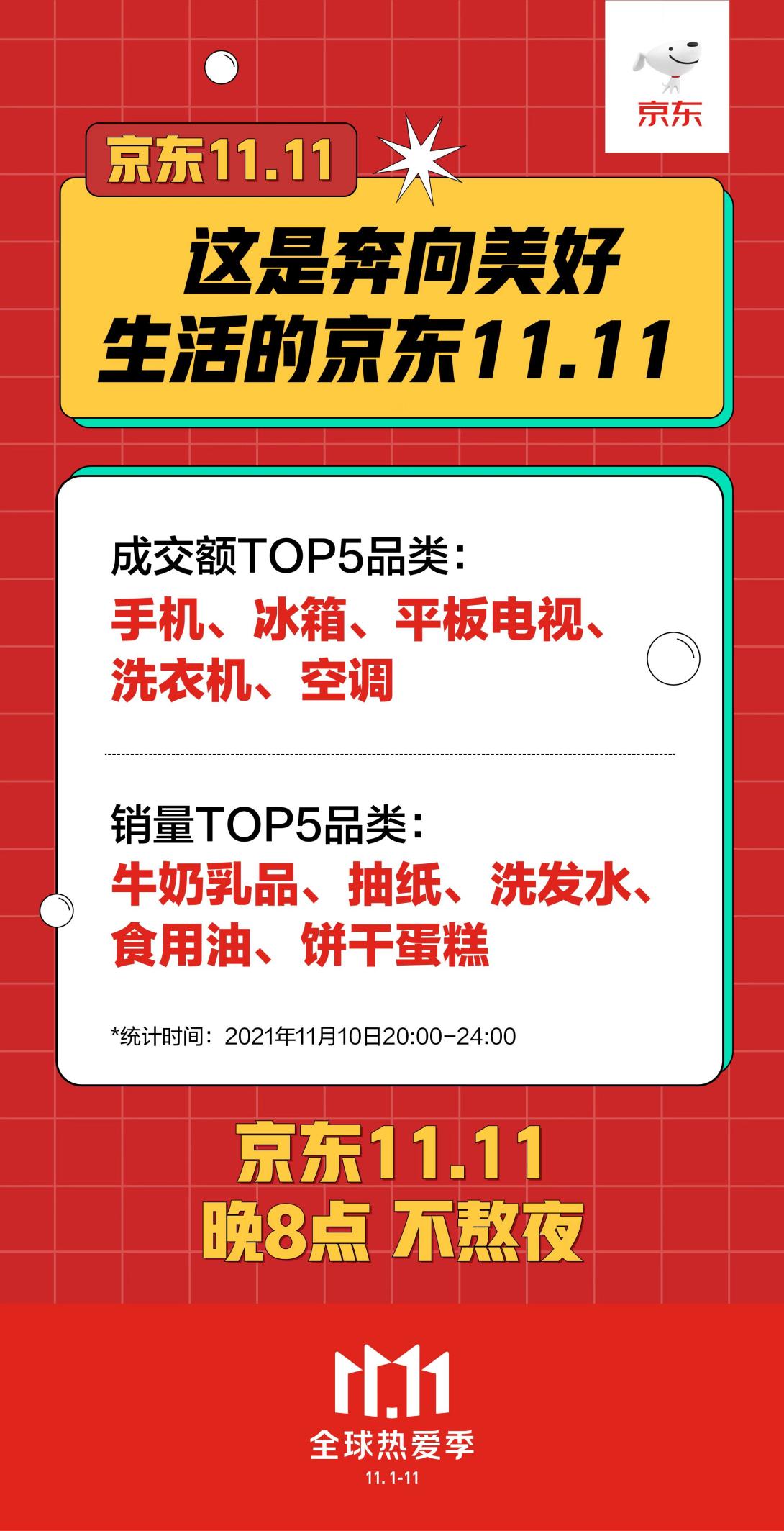 從10日晚8點到11日0點短短4小時內(nèi),可以看到消費者對美好生活的向往和對消費升級的追求。其中成交額TOP5品類:手機、冰箱、平板電視、洗衣機、空調(diào);銷量TOP5品類:牛奶乳品、抽紙、洗發(fā)水、食用油、餅干蛋糕。