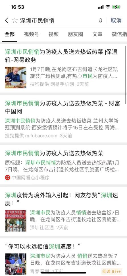 1月9日,一篇名為《一箱多出的熱飯菜溫暖了核酸采樣點(diǎn)的冬夜》的報(bào)道登上了央視新聞。在深圳全民抗疫期間,“維小飯”為核酸檢測(cè)醫(yī)護(hù)人員偷偷送上用保溫箱裝好的熱飯熱菜,獲網(wǎng)友紛紛點(diǎn)贊:你永遠(yuǎn)可以相信“深圳速度”,也永遠(yuǎn)可以相信“深圳創(chuàng)新”。央視新聞報(bào)道之后,熱度持續(xù)不減?!吧顝V電第一現(xiàn)場(chǎng)”“羊城晚報(bào)”“光明網(wǎng)”“中國(guó)青年網(wǎng)”等權(quán)威媒體也將此事件進(jìn)行了報(bào)道,引發(fā)眾網(wǎng)友熱議。