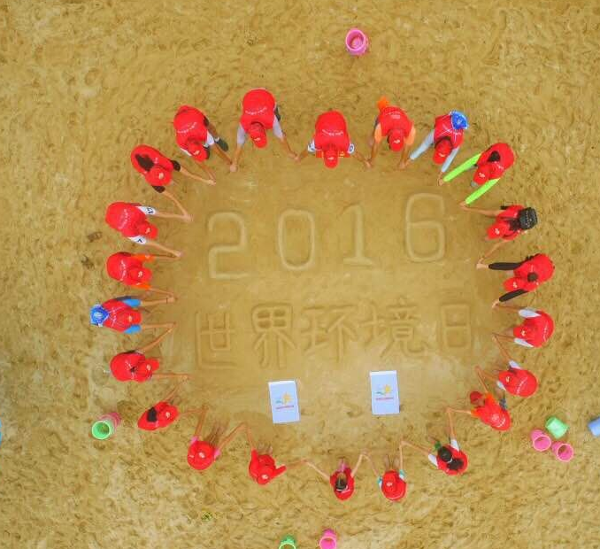 在徐賢、姚軍的鼓勵和幫助下,劉曉紅組織了第一場文明微行動——2016年6月5日大梅沙沙灘世界環(huán)境日宣傳。她為此活動制定了在沙灘砌立體字宣傳環(huán)保的方案,這看起來簡單實際的方案對于劉曉紅她們這些第一次堆沙字的自愿者來說難度可不小。活動當天,當她和微友們齊心協(xié)力把大家心中的“2016世界環(huán)境日”這幾個大字成功堆砌出來,向沙灘的游客宣傳“人人參與環(huán)保,世界才會更加美好”時,每位參與的志愿者都興奮得圍著“2016世界環(huán)境日”在沙灘上跳起來。