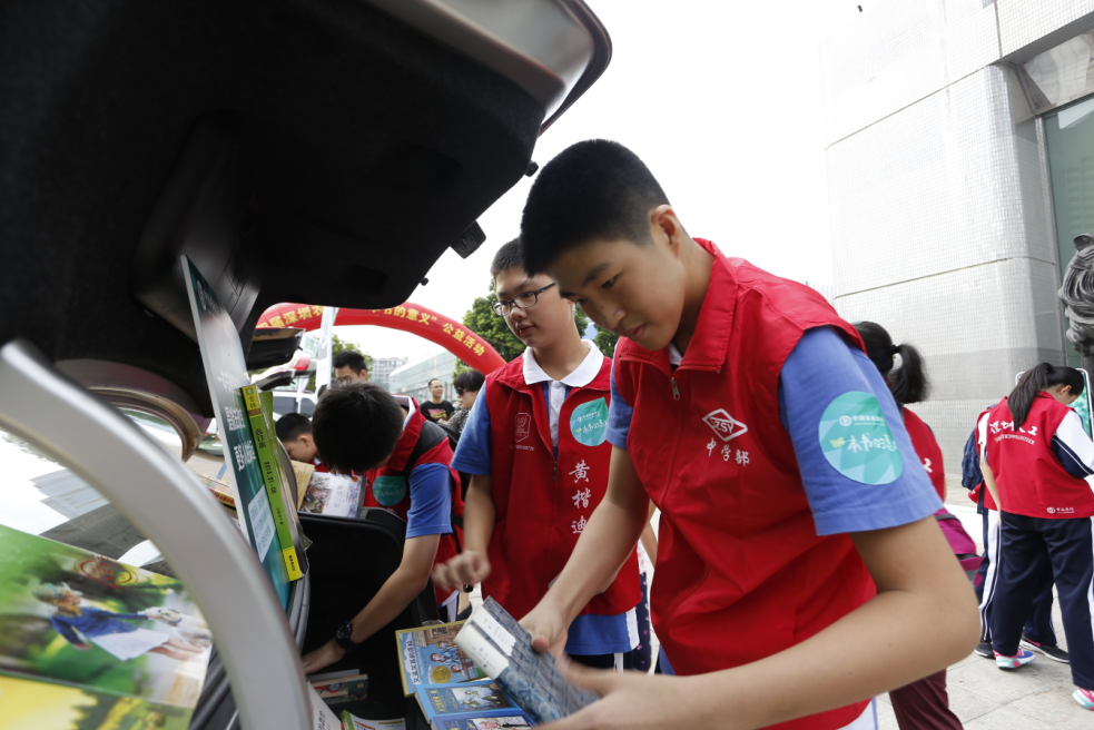 深圳市實驗學(xué)校中學(xué)部初二(1)班此次組織了三輛車參加本次車尾箱換書活動,他們帶來了300余本書,剛一擺出來,車前就圍滿了人。記者在現(xiàn)場看到,實驗學(xué)校中學(xué)部為此次車尾箱捐換書活動準(zhǔn)備的書籍質(zhì)量非常高,種類也十分豐富,涵蓋了童話故事,文學(xué)名著,歷史,人物傳記等多個類別,其中以廣大中小學(xué)生非常喜愛的書籍為主。并在活動結(jié)束時,將帶來的300余本書全部捐獻(xiàn)出去。