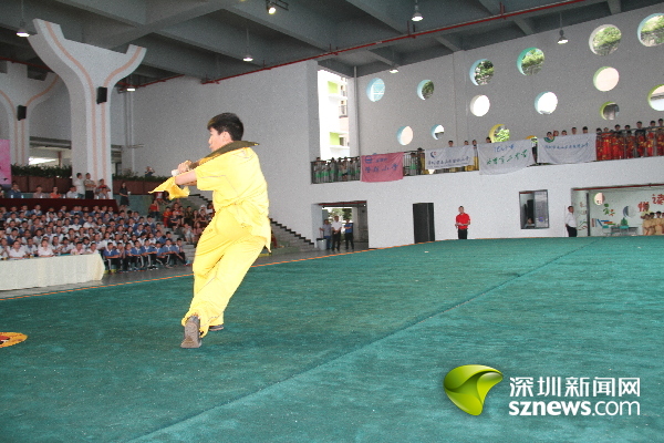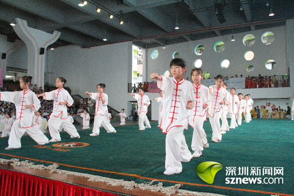 深圳新聞網(wǎng)訊(記者 王志明 通訊員趙小平)長(zhǎng)拳如虹,刀光棍影。5月26日,南山區(qū)2017年中小學(xué)傳統(tǒng)文化節(jié)武術(shù)展示活動(dòng)在南山外國(guó)語(yǔ)學(xué)校(集團(tuán))大沖學(xué)校精彩上演,來(lái)自南山區(qū)西麗二中、南頭城小學(xué)等16所學(xué)校幼兒園的師生“以武會(huì)友”,進(jìn)行了太極劍、南拳和刀術(shù)等48個(gè)項(xiàng)目角逐,并向大家展示了所學(xué)到的“中國(guó)功夫”。南山區(qū)副區(qū)長(zhǎng)練聰觀看了武術(shù)展示。