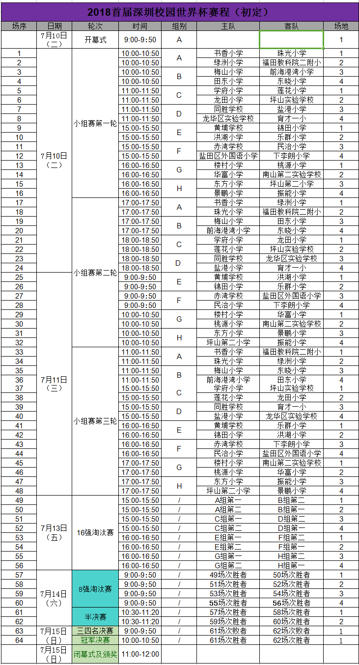 賽程表