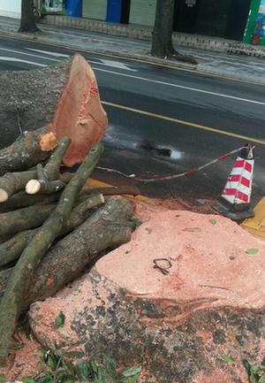 怡景路老樹被修剪后僅剩一截樹墩