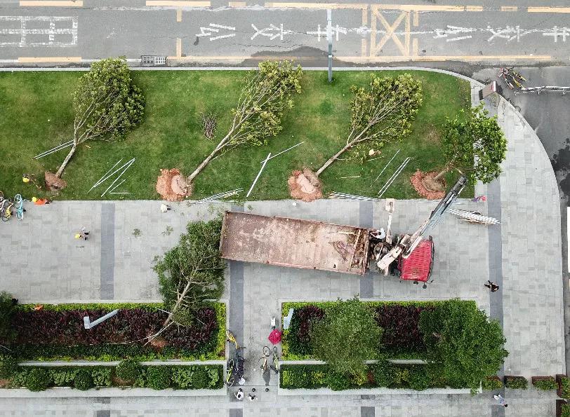 組織人力和車輛將倒伏樹(shù)木扶正并種好