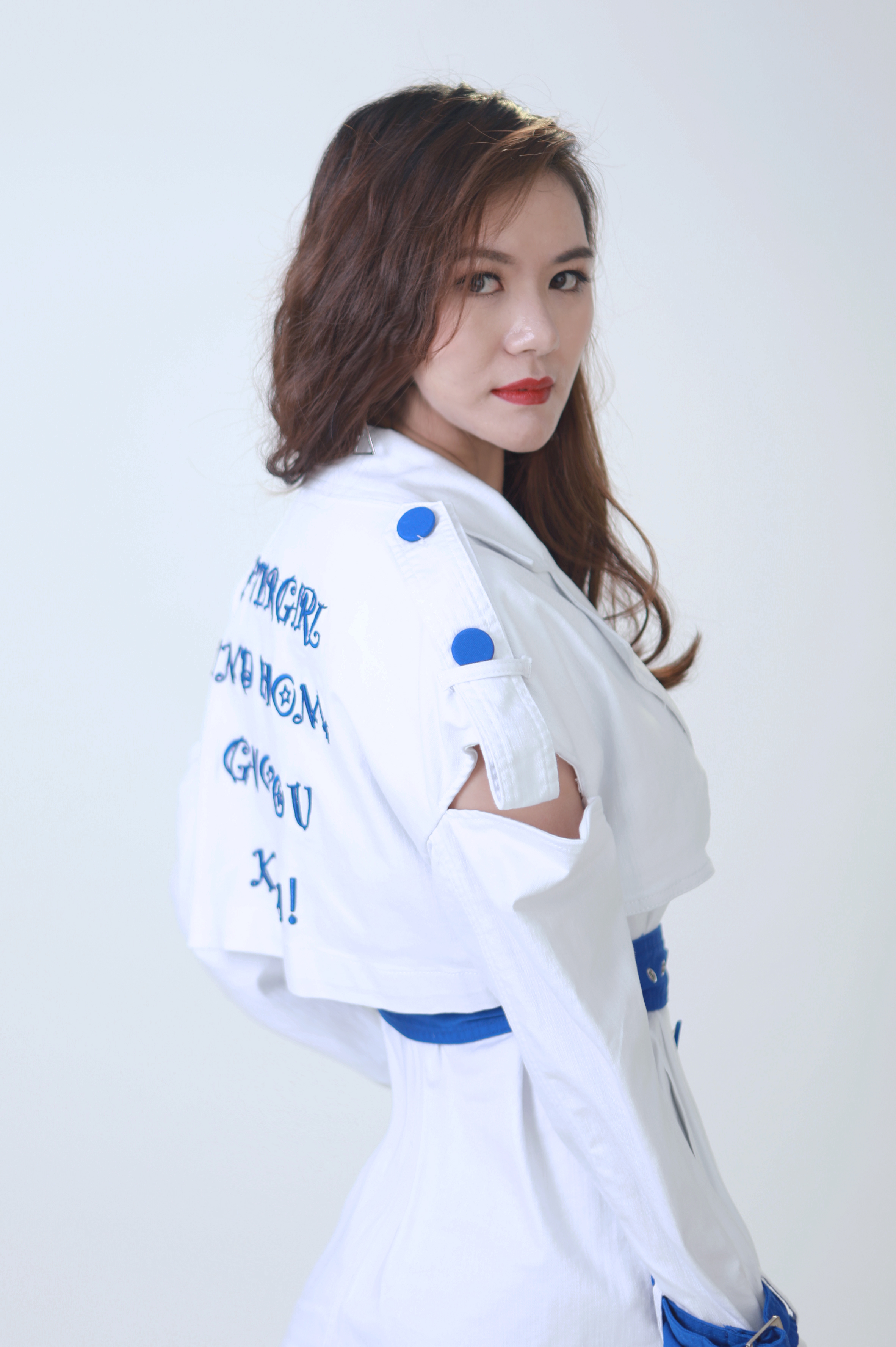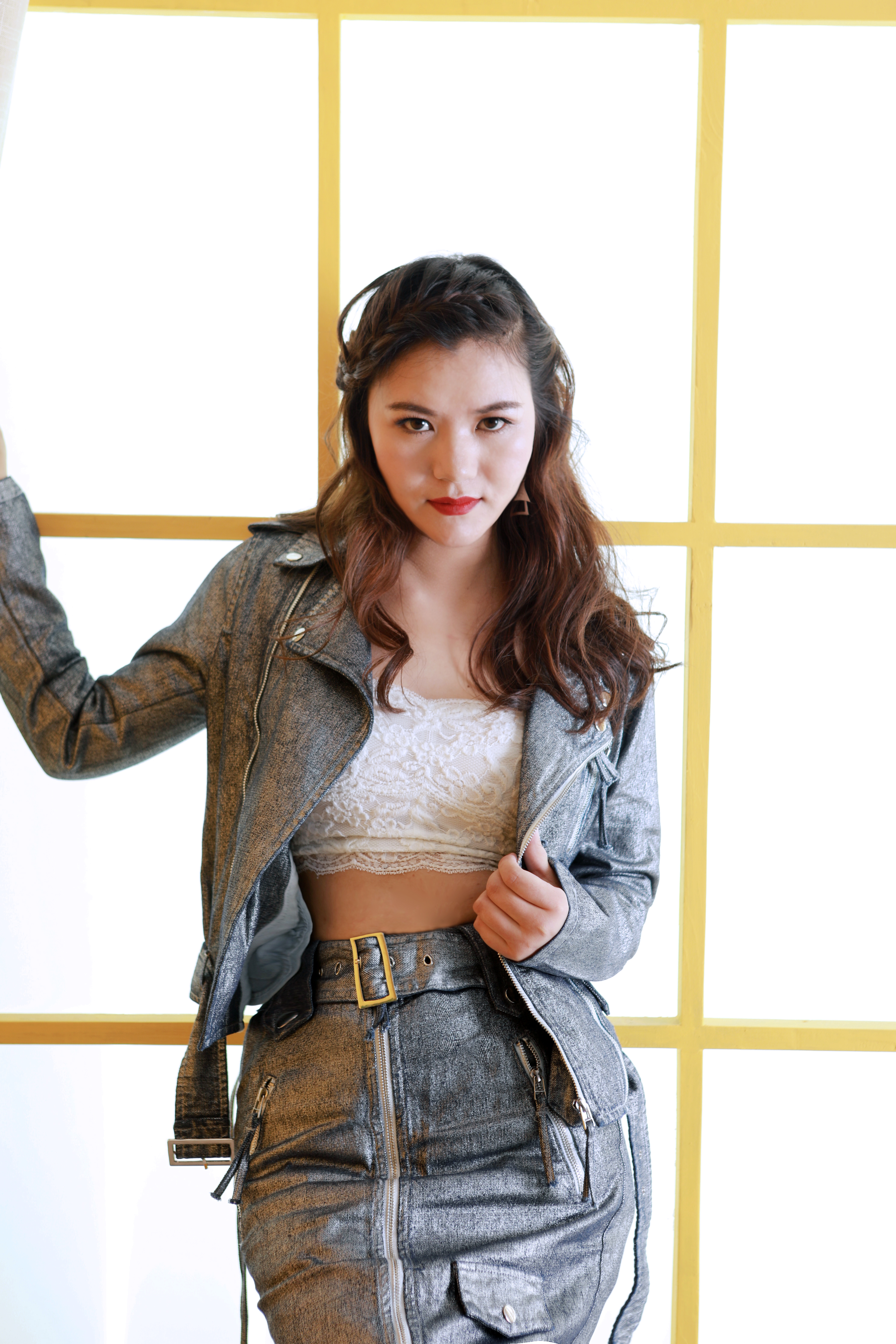 服裝師給小田田選擇了一套金屬色澤的牛仔夾克&半裙,金屬材質(zhì)和夾克讓牛仔更顯霸氣,溫柔的半裙又調(diào)和了剛硬感,剛中帶柔的感覺(jué),讓剛才甜甜的小田田又御姐了起來(lái)呢。