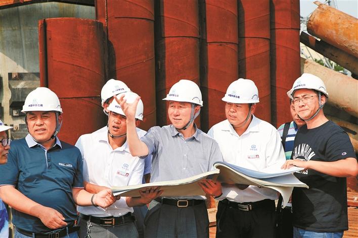 陳宜言(中)等人在施工現(xiàn)場(chǎng)。