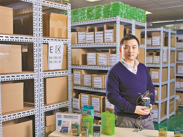 我在大學(xué)甚至更早的時(shí)候就深有體會(huì)——我有很多想法,但是缺乏必要的技術(shù)去把這個(gè)想法實(shí)現(xiàn)出來(lái)。我在國(guó)外的一個(gè)開源硬件論壇留言說(shuō)我的體會(huì),沒(méi)想到有那么多創(chuàng)客回饋說(shuō)有同感,論壇上創(chuàng)客們的積極回應(yīng)讓我看到了商機(jī)。我發(fā)現(xiàn),很多硬件模塊因?yàn)閯?chuàng)客需要的量少,很多工廠不愿意生產(chǎn)。后來(lái),我想到了在國(guó)際創(chuàng)客論壇發(fā)帖征集創(chuàng)客們的需求,再到國(guó)內(nèi)電子市場(chǎng)搜集硬件加工后發(fā)給創(chuàng)客的點(diǎn)子。于是,我便做起了開源硬件的生意。“為創(chuàng)客服務(wù)”,這是我創(chuàng)業(yè)的最初目標(biāo)。