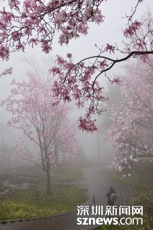 北川藥王谷,雨霧濛濛之中觀(guān)賞盛開(kāi)的辛夷花,宛若置身仙境......李仁奇 攝