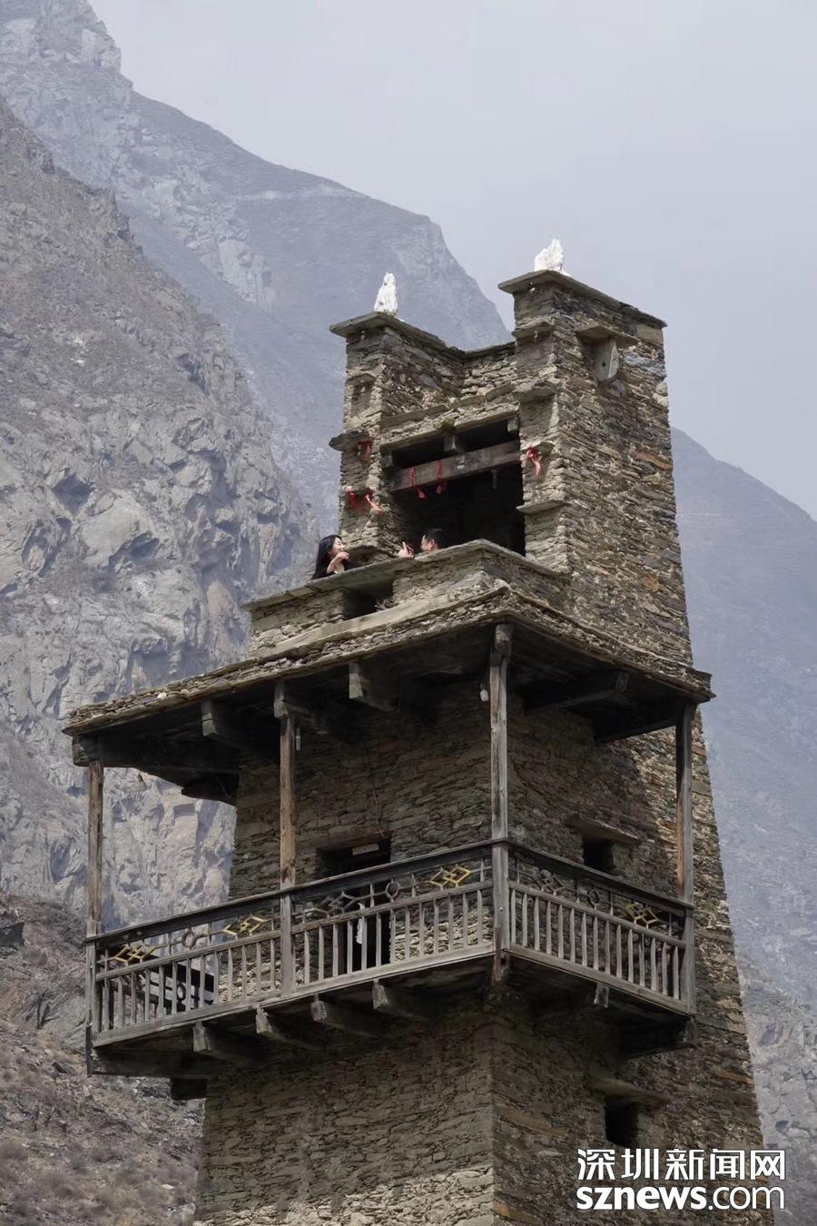 碉樓是整個(gè)寨子的標(biāo)志性建筑,目前僅存兩座,一座是陳仕明家的住宅,另一座雄踞在寨子對(duì)面的河岸上。碉樓分為9層,高30米左右,各層四方開有射擊窗口,頂樓的鐘孔是作為傳遞消息用的。李仁奇 攝