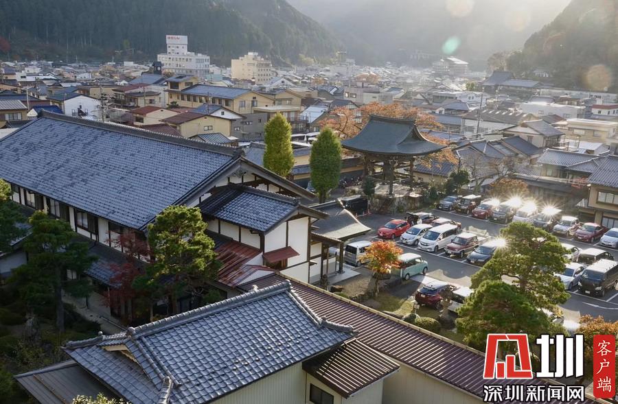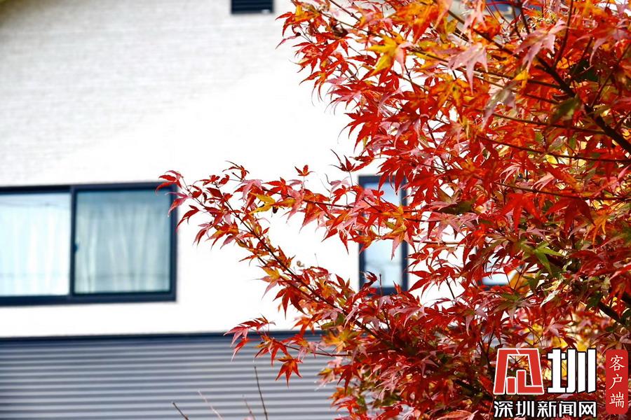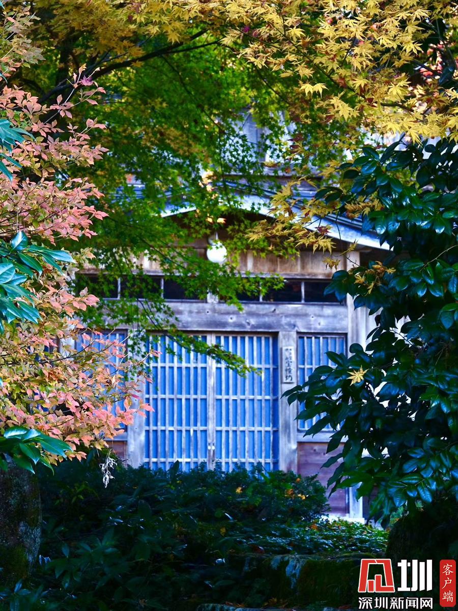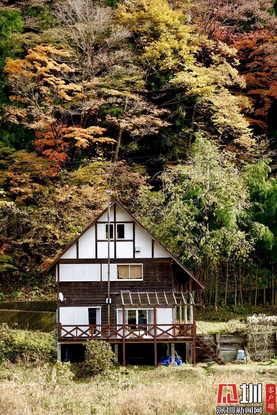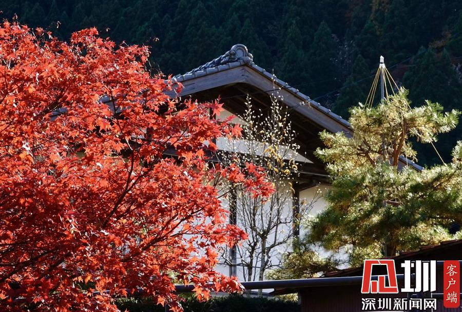 在明媚的陽(yáng)光下,日本風(fēng)格民居掩映在紅葉之中,房前屋后的小景也很漂亮。李仁奇攝