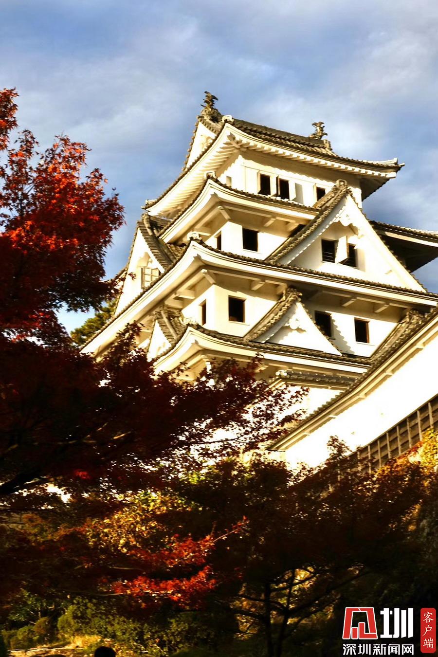 登上海拔354米的八幡山,木造古建筑天守閣下被染紅的楓樹(shù)和小城街市盡收眼底。李仁奇攝