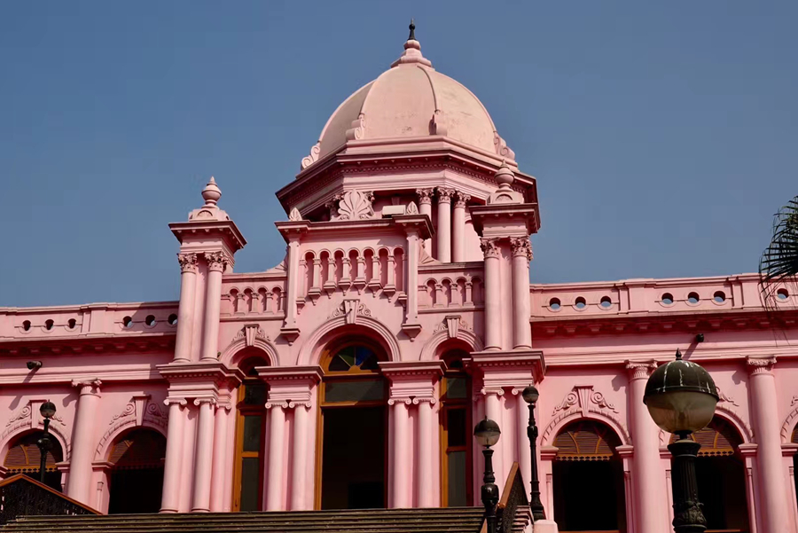 距孟加拉恒河渡口不遠的地方有一座粉紅色宮殿式的豪華建筑。那是1872年一位名叫阿赫桑曼濟勒的地主在法國人留下的倉房基礎(chǔ)上改建的私邸,后來曾在一次龍卷風襲擊時受創(chuàng)。李仁奇 攝