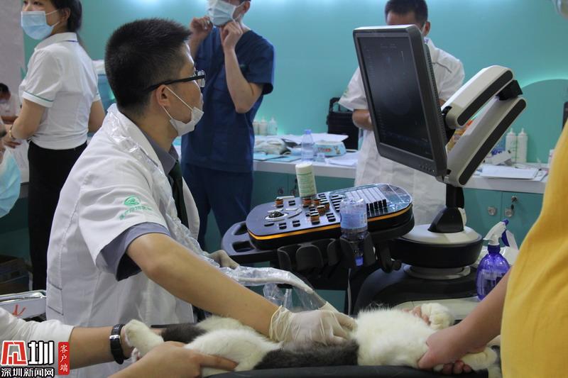 寵物醫(yī)生現(xiàn)場(chǎng)為寵物進(jìn)行身體檢查。