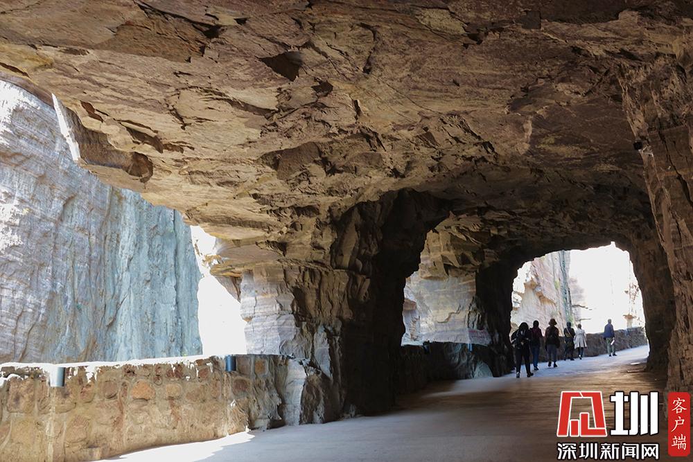 萬(wàn)仙山峭壁中的隧道令人贊嘆。李仁奇攝