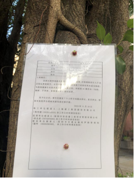 行道樹上貼的工程告示