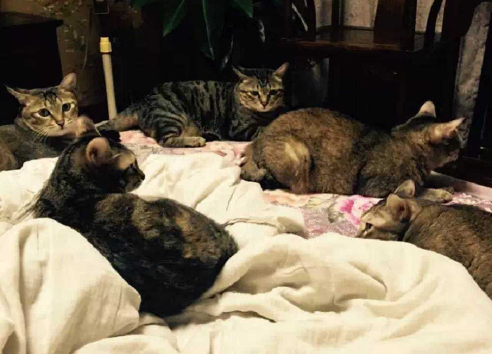 家里養(yǎng)了16只貓2只狗,另外喂養(yǎng)了幾十只流浪貓,并給身體條件合適的貓咪絕育。