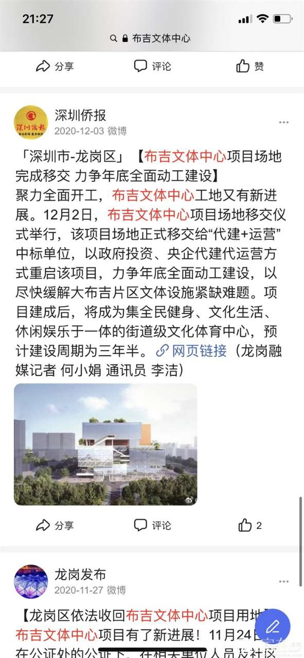 市民再問:布吉文體中心何時開工建設?龍崗區(qū)文體旅游局:爭取春節(jié)后正式動工