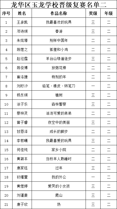 自2021年1月,活動(dòng)征稿啟動(dòng)以來(lái),獲得了深圳市廣大中小學(xué)生、教師、文學(xué)愛(ài)好者的熱烈響應(yīng)積極參與,吸引了深圳百余所學(xué)校的上萬(wàn)人關(guān)注報(bào)名。現(xiàn)公布龍華區(qū)玉龍學(xué)校專(zhuān)場(chǎng)第二批晉級(jí)復(fù)賽名單如下: