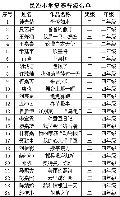 自2021年1月,活動征稿啟動以來,獲得了深圳市廣大中小學生、教師、文學愛好者的熱烈響應積極參與,吸引了深圳百余所學校的上萬人關注報名?,F(xiàn)公布龍華區(qū)民治小學晉級復賽名單如下: