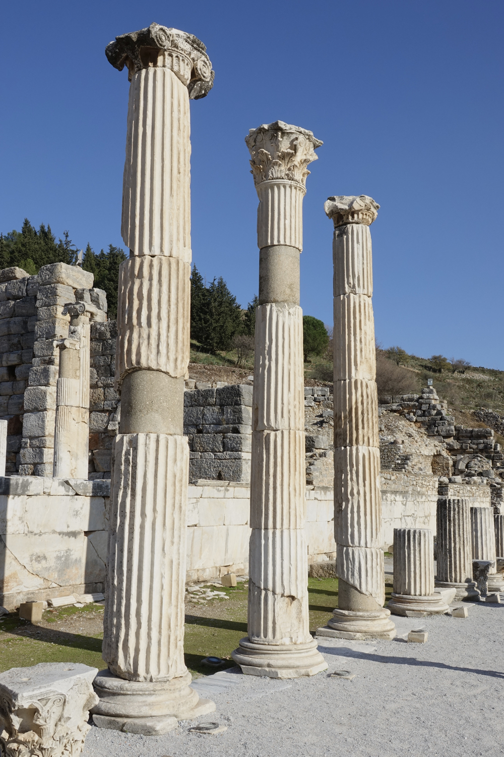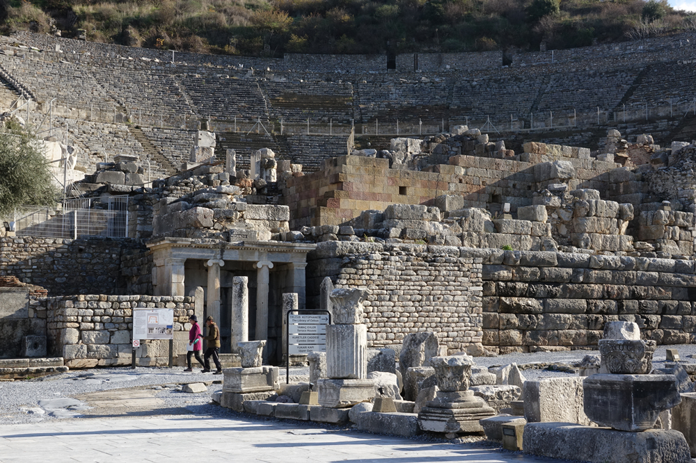 立柱背后是市政廳遺址。經(jīng)過幾百年的地貌變遷,以弗所的入??跐u漸被淤泥填塞,它賴以生存的海洋貿(mào)易遂告終結(jié),加上地中海沿岸頻發(fā)的地震,以弗所難逃被遺棄的噩運,這座新約《圣經(jīng)》中出現(xiàn)過的城市,最終淪為一片大理石廢墟。李仁奇 攝