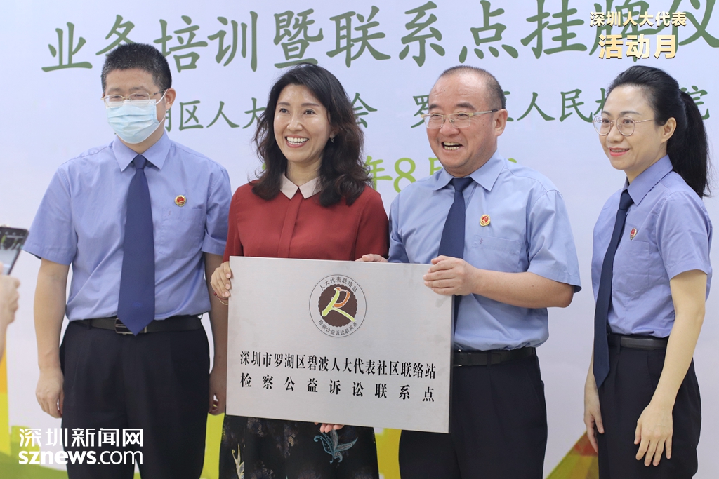 羅湖區(qū)碧波人大代表社區(qū)聯(lián)絡(luò)站檢查公益訴訟聯(lián)系點(diǎn)掛牌儀式現(xiàn)場(chǎng)。