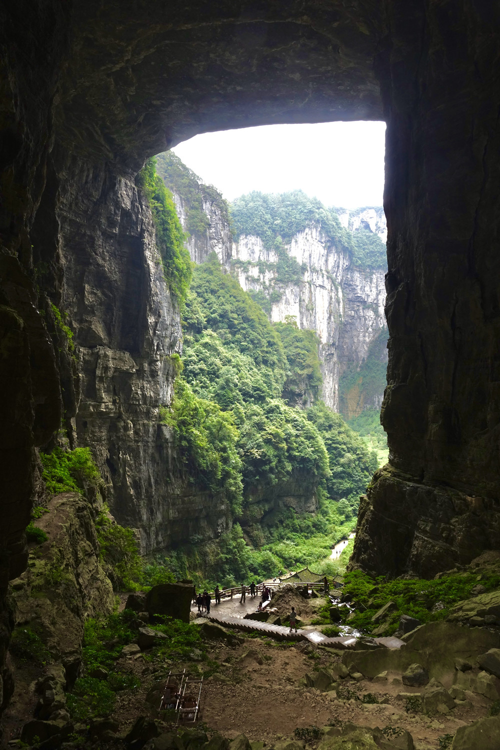 天龍橋?yàn)檠蛩訊{谷上的第一座天生橋,又名頭道橋,高大厚重、磅礴氣勢,以雄壯稱奇。橋高235m,橋厚150m,平均拱橋高度96m。拱孔跨度20-75m,平均34m,橋面寬度147m。李仁奇 攝
