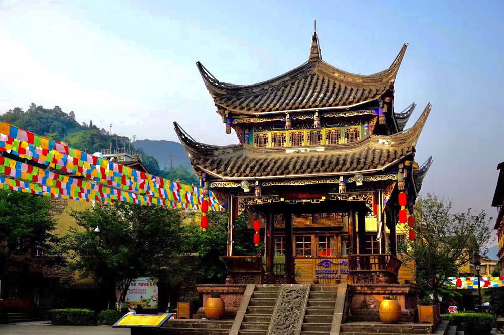 萬年臺,始建于明萬歷年間,汶川地震后依原樣修復(fù),具有古樸典雅的民族特色和地方藝術(shù)風(fēng)格。李仁奇 攝